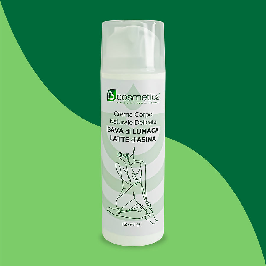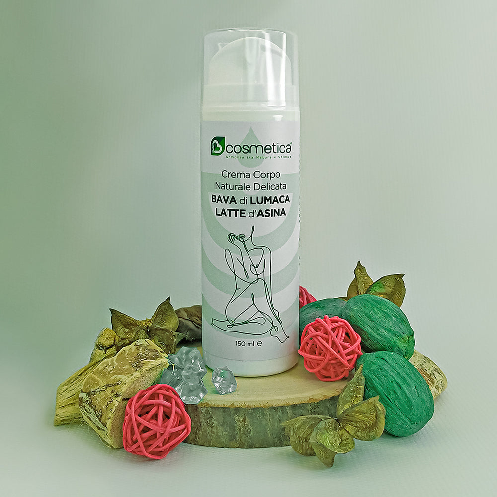La Crema Corpo Naturale Delicata Bcosmetica arricchita con Latte d'Asina e Bava di Lumaca è un trattamento lussuoso e idratante per la pelle di tutto il corpo. La sua formula unica combina i benefici del Latte d'Asina e della Bava di Lumaca per offrire una cura completa per la pelle, mantenendola morbida, liscia e idratata.